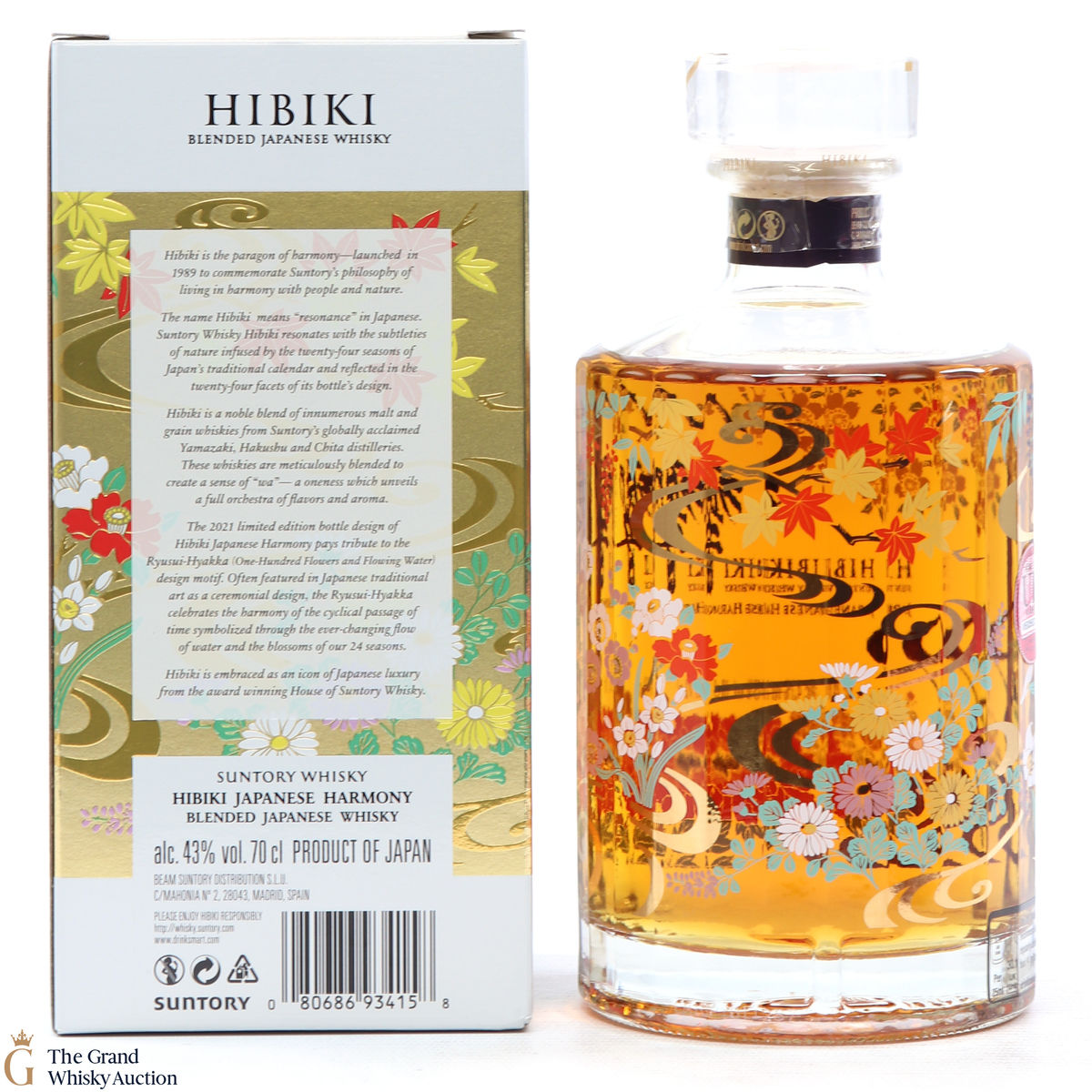 This is a limited edition, specially designed bottle with painted flowers and flowing ribbons of water. The 2021 special edition pays homage to the Ryisui-Hyakka (One Hundred Flowers and Flowing Water) and celebrates different seasonal flowers which help characterise the Japanese seasons. 5 types of casks were used and in typical Hibiki fashion, the bottle always has 24 facets which represent 24 seasons in the Japanese lunar calendar.