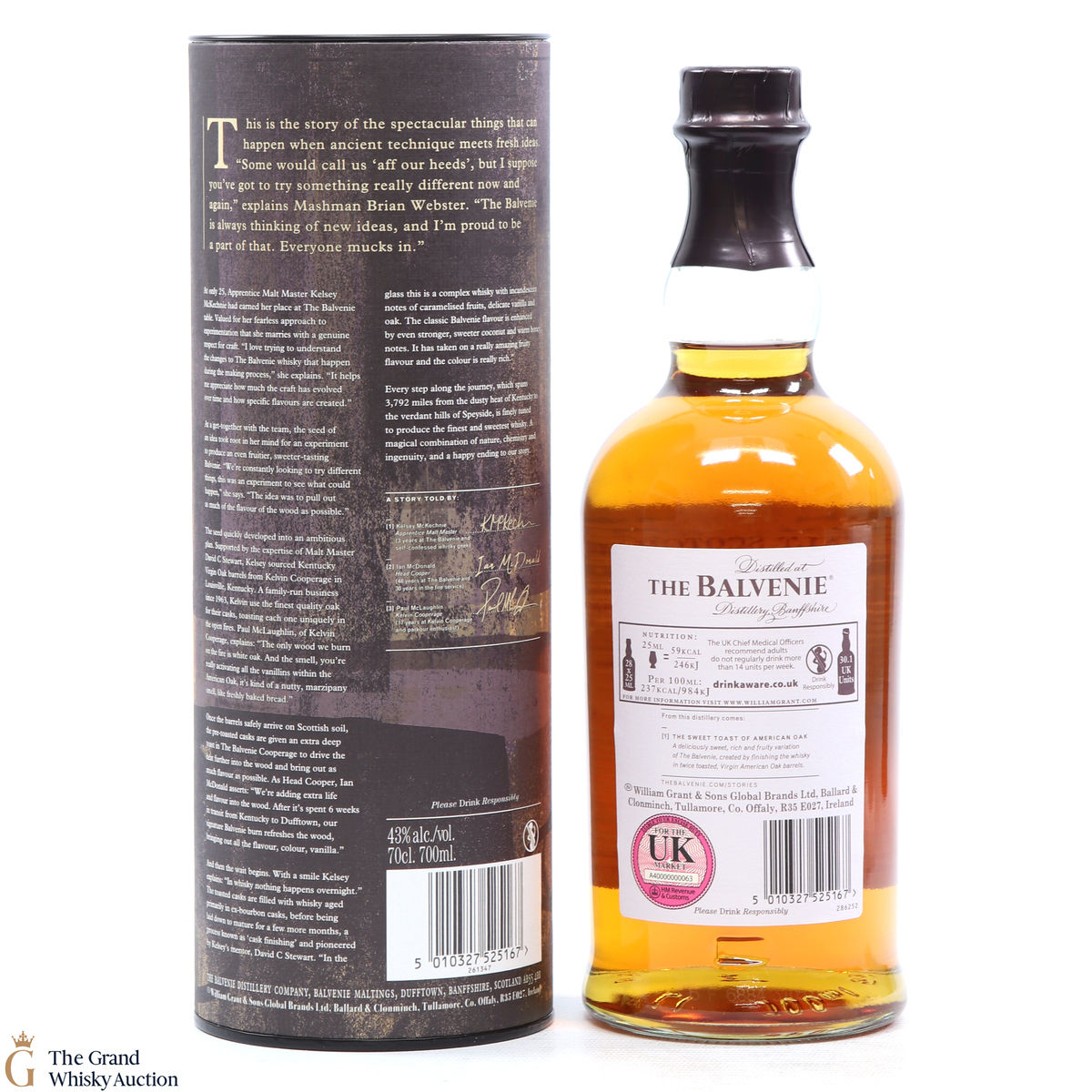 This is the introductory release from The Balvenie Stories range. Celebrating Kelsey McKechnie's idea to import virgin oak barrels from Kentucky and deeply toast them at the distillery's cooperage. They were then filled with Balvenie's ex-bourbon oak aged whisky for a finishing period.