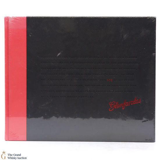 The inscription on the front of the book reads 'Sometime in the Eighteenth Century an unknown farmer began distilling in Strathspey's Glen of the Green Grass... For 175 Years it has single-mindedly gone on, independent in ownership and outlook, continuing to make the fine single malt whisky that today the world knows as Glenfarclas'