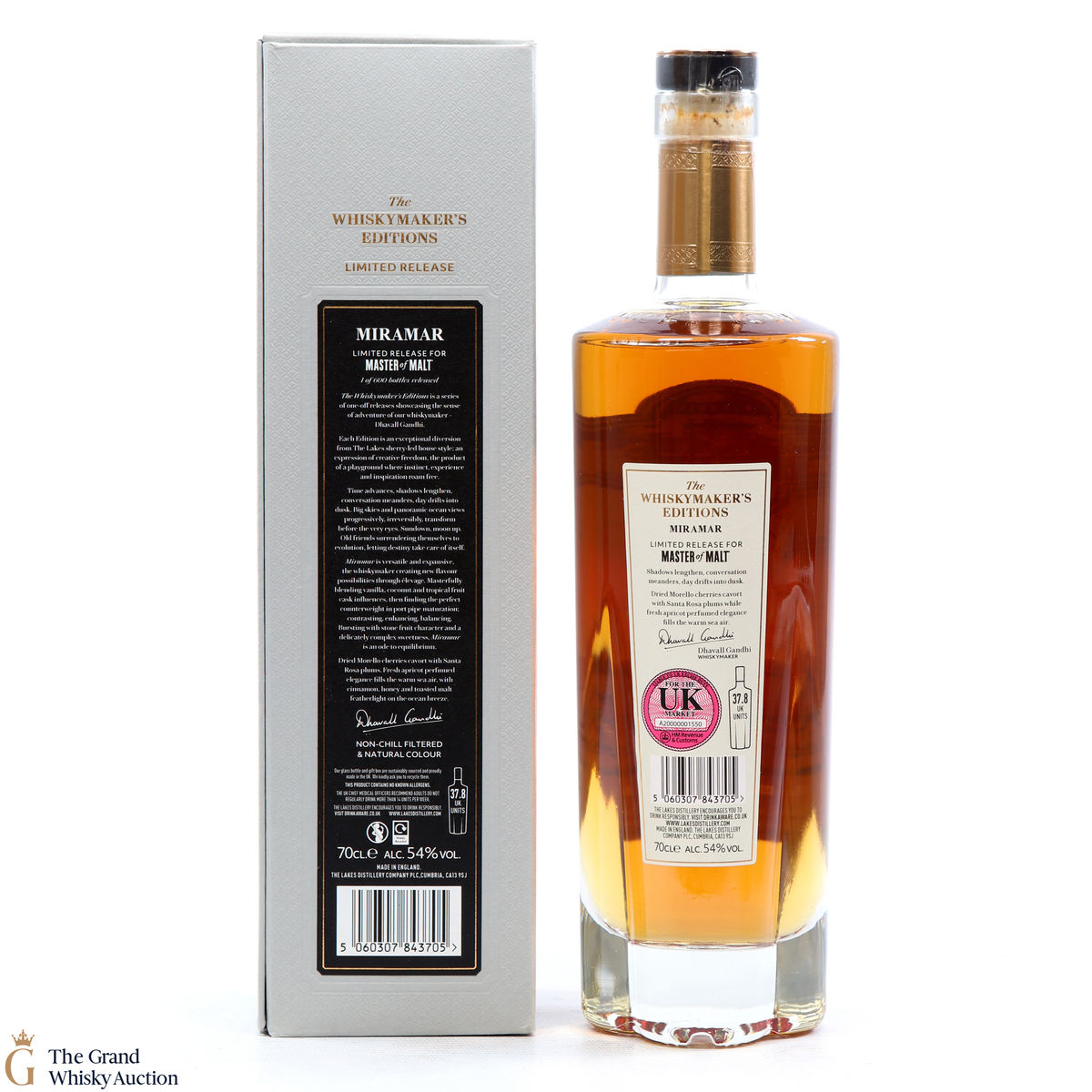 Distilled at The Lakes Distillery, this single malt is an exceptional diversion from the distillery's sherry house style. Given the title Miramar, this is part of The Whiskymaker's Editions and was bottled exclusively for Master of Malt.