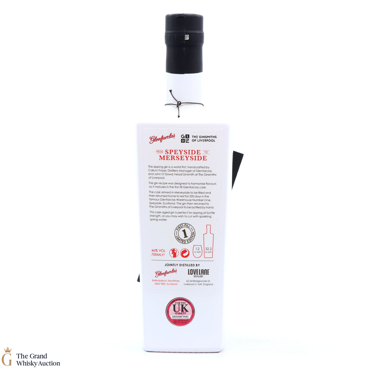 A cask-aged gin collaboration between The Ginsmiths of Liverpool & Glenfarclas. This limited edition gin was Matured in first fill Glenfarclas casks for 222 days. Only 460 bottles were released.