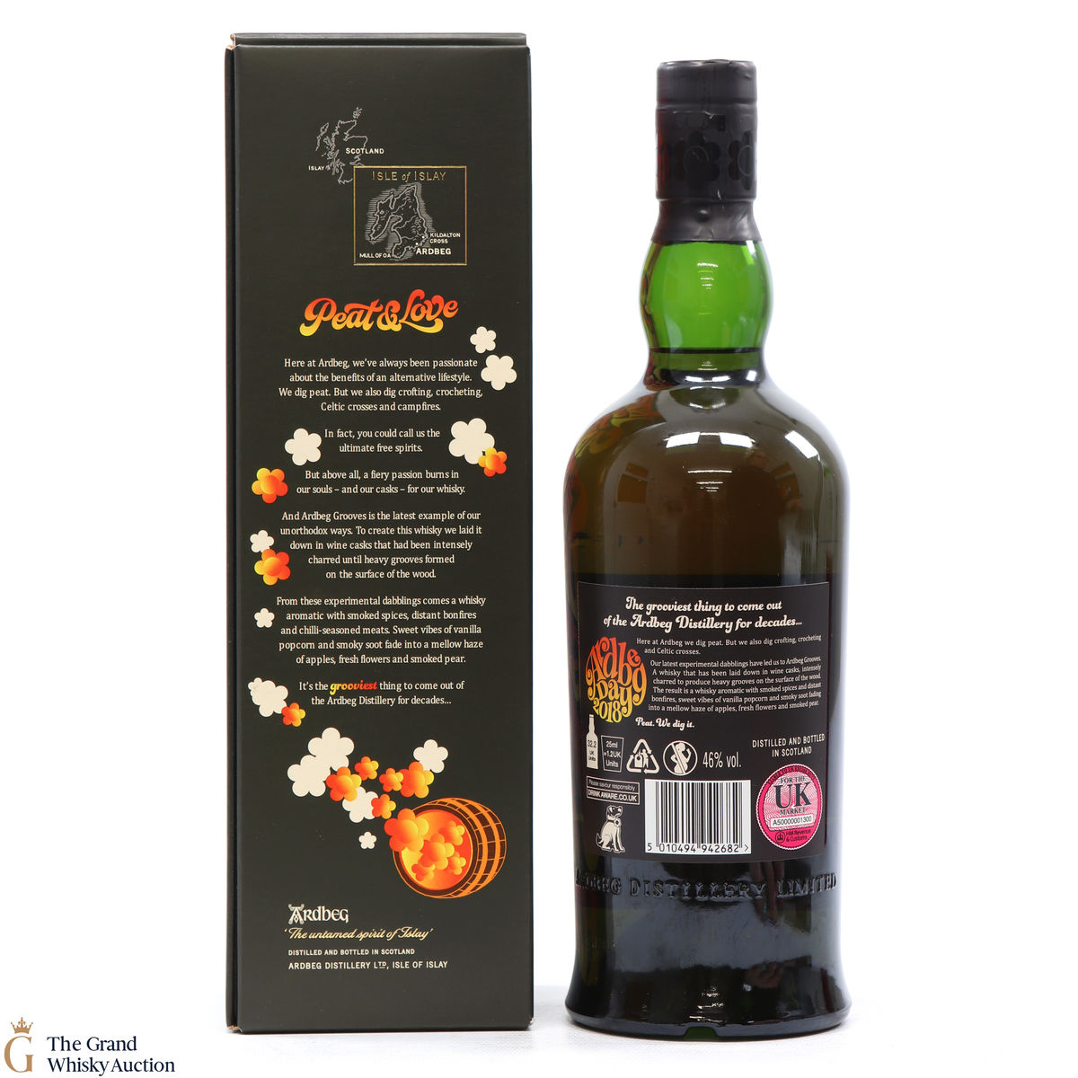 This limited edition Islay single malt was released to mark the 2018 Ardbeg Day at the Islay Festival of Music & Malt. The theme is a throwback to the Island's 1960s spirit, embodying the ideals of 'peat & love'! Ardbeg Grooves is crafted with ex-wine casks that are re-charred to create heavy grooves in the wood, allowing more interaction with the spirit and creating a richer flavour.