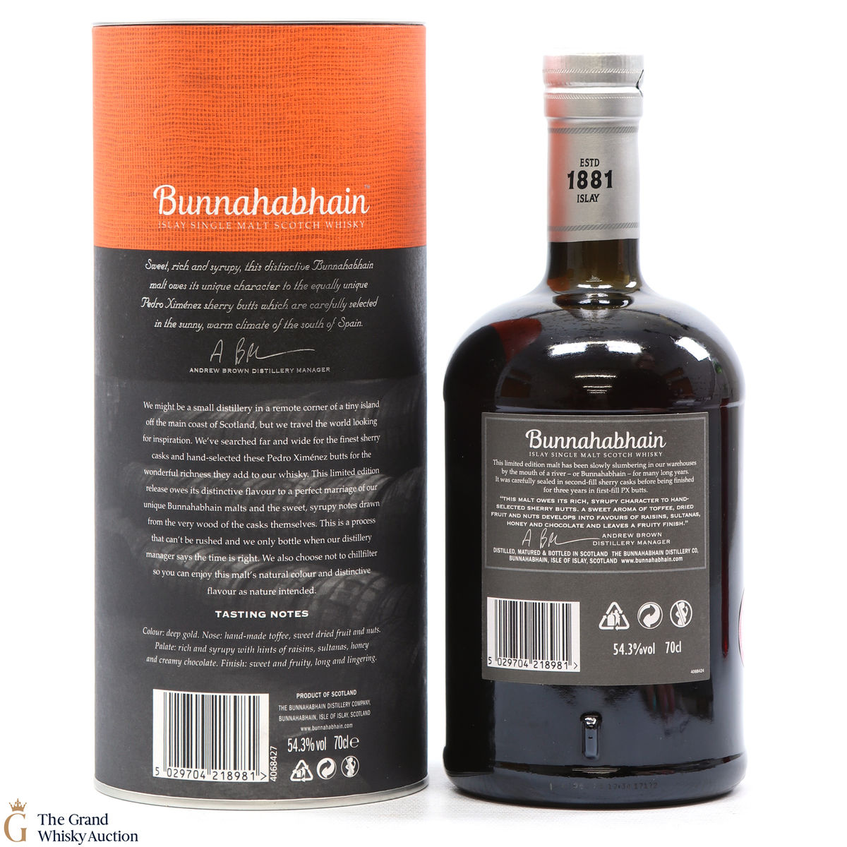 A limited-edition bottling from the Bunnahabhain distillery on the northeast coast of Islay. Distilled in 2003 and was initially aged in second-fill Sherry casks until 2011. At this point, the whisky was transferred over to yet more Sherry casks - first-fill Pedro Ximénez casks! It was bottled in 2017 at cask strength. This is one of 6768 individually numbered bottles.