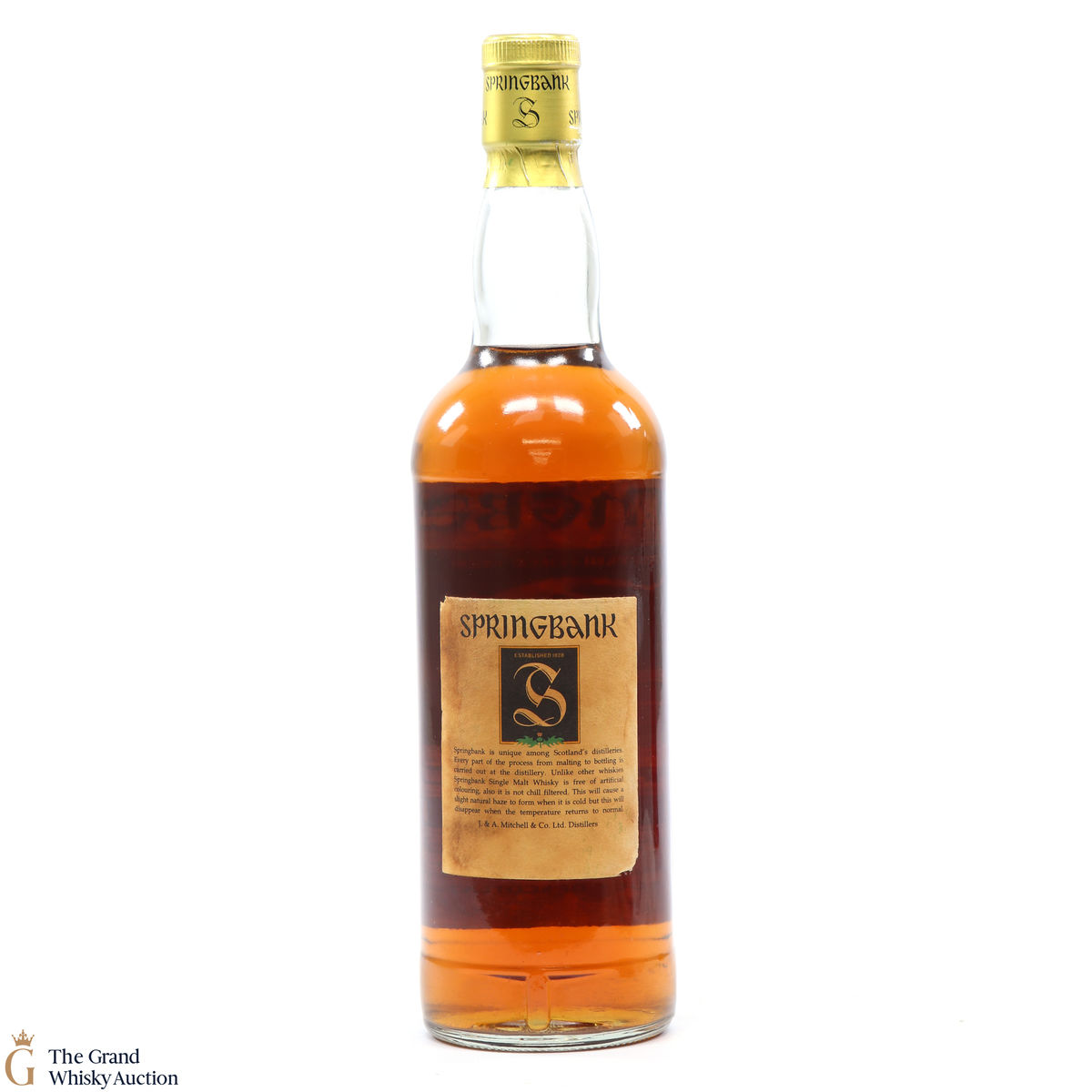 A collectable bottling of 15-year-old Springbank single malt. It features green thistle trapping on the label.