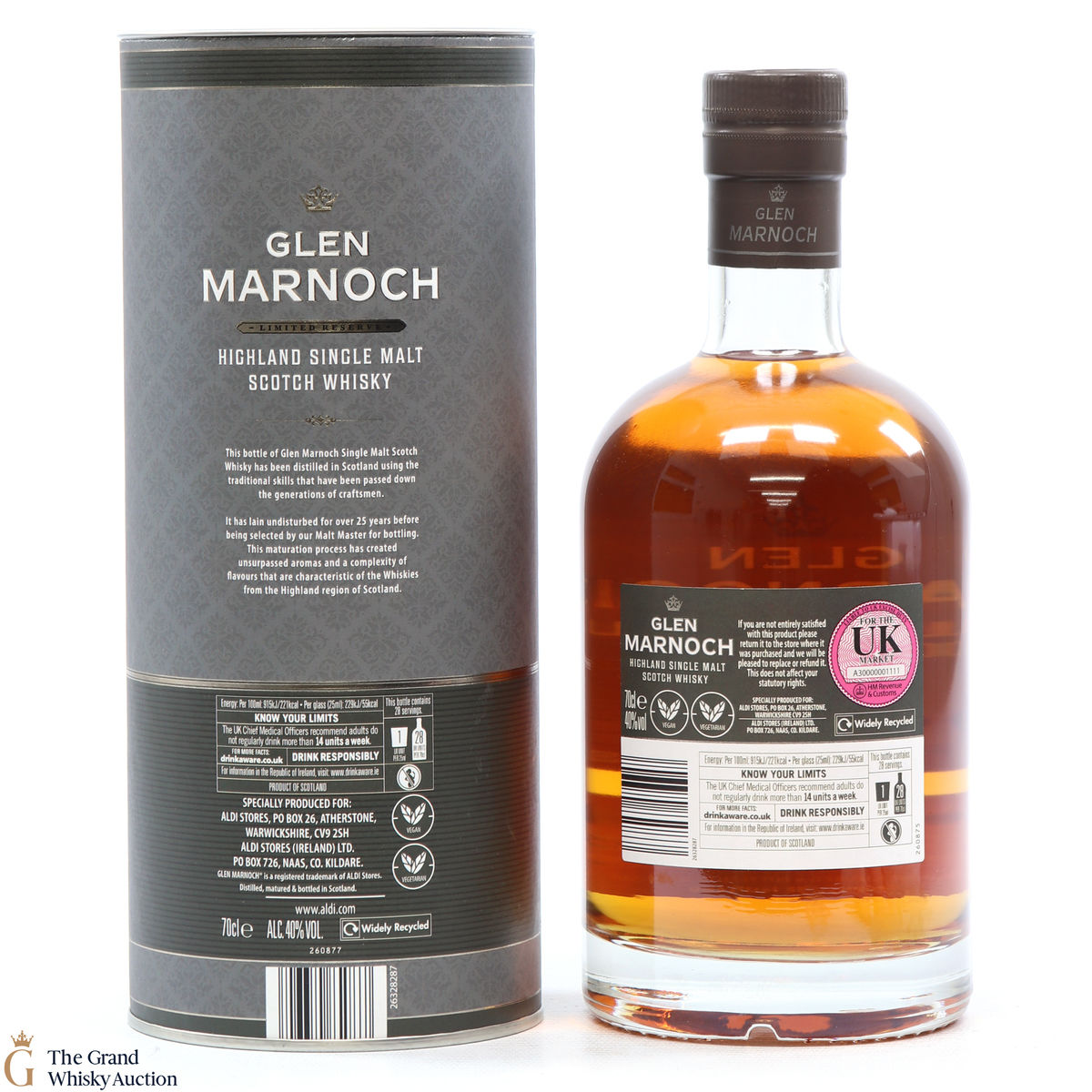 Due to the various ages of bottles and their seals, the condition of liquid is at the buyer's discretion and no claim can be lodged against failure/leakage in transit. Loss and breakage cover is available at 3% of the hammer price as standard. If the lot is not insured, no claim can be lodged against the courier or The Grand Whisky Auction for breakage or loss in transit.