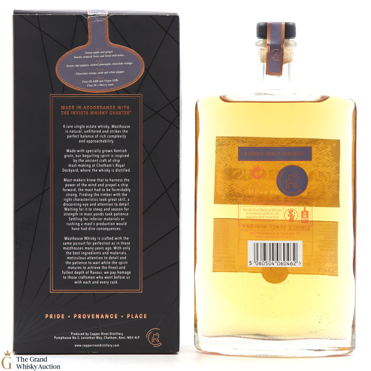 Masthouse Single Malt, made in accordance with the distillery's very own Invicta Whisky Charter. This expression is distilled from Kentish malted barley from the nearby Isle of Sheppey, and was aged in a combination of ex-bourbon and virgin American white oak barrels.