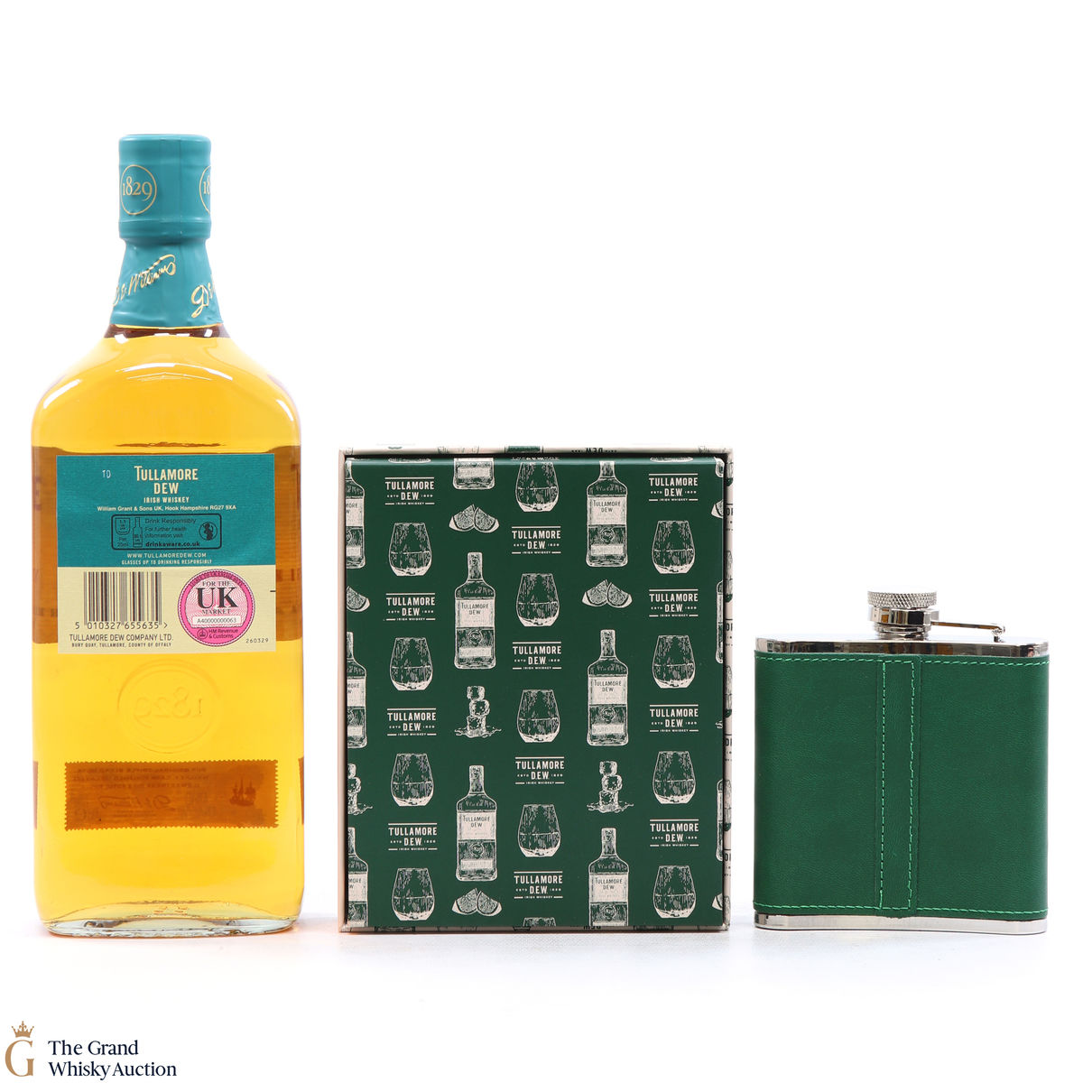 This lot includes Tullamore Dew - Caribbean Rum Finish & a branded hip flask.