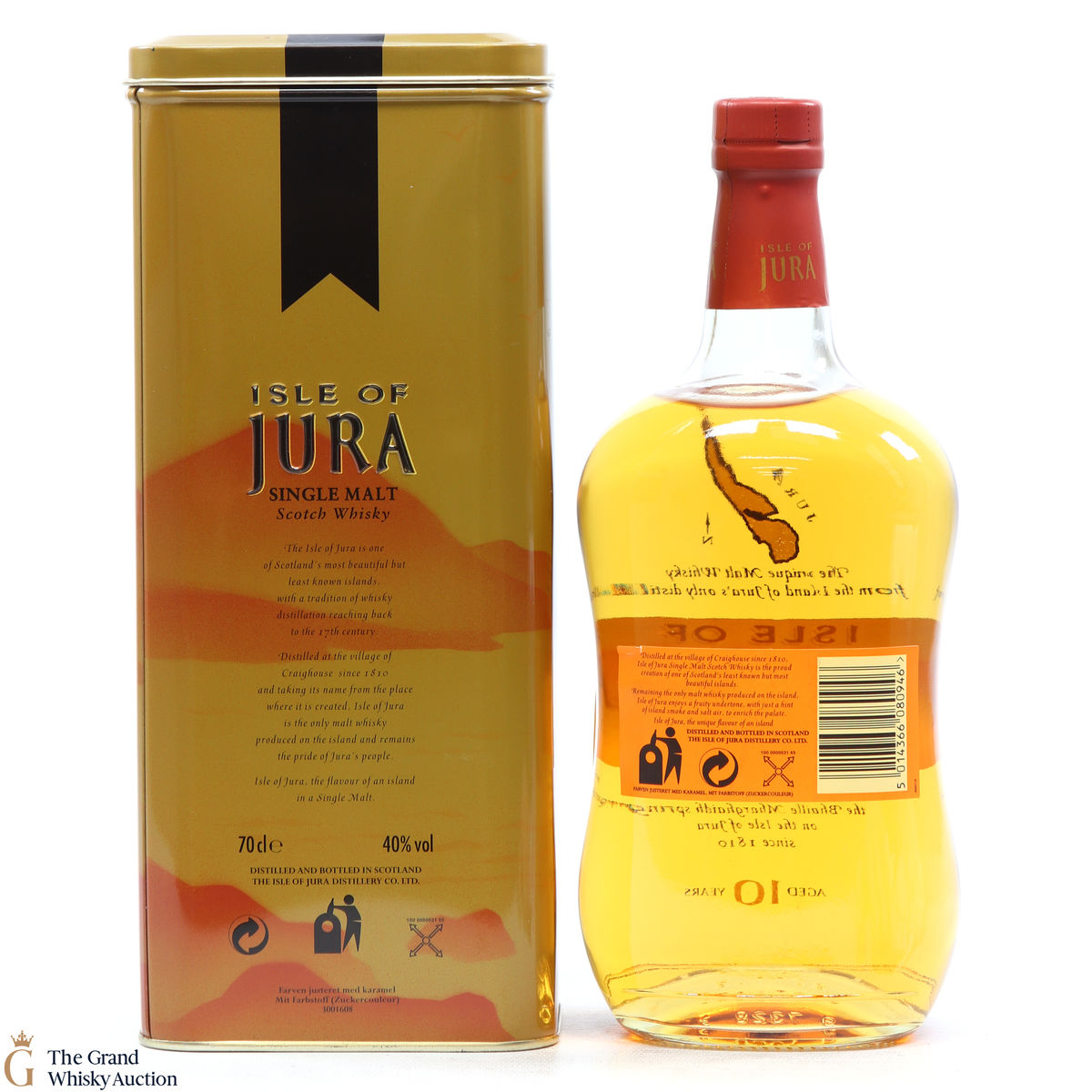 A bottle of Jura 10 Year Old. Originally built in 1810, the distillery fell into disrepair and wasn't revived until the 1960's by two local estate owners.