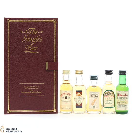 This book-themed presentation box contains a collection of Scotch whiskies from Invergordon Distillers. The Singles Bar set includes a tasting glass & 5 x 5cl whiskies.