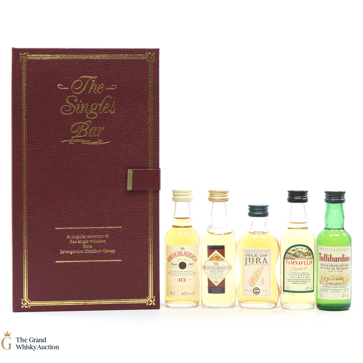 This book-themed presentation box contains a collection of Scotch whiskies from Invergordon Distillers. The Singles Bar set includes a tasting glass & 5 x 5cl whiskies.