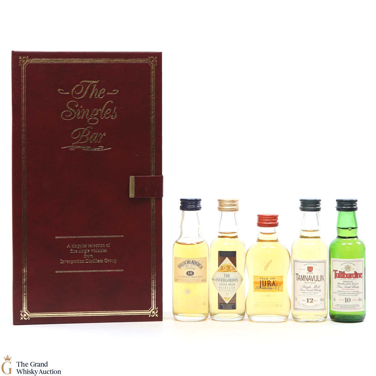 This book-themed presentation box contains a collection of Scotch whiskies from Invergordon Distillers. The Singles Bar set includes a tasting glass & 5 x 5cl whiskies.
