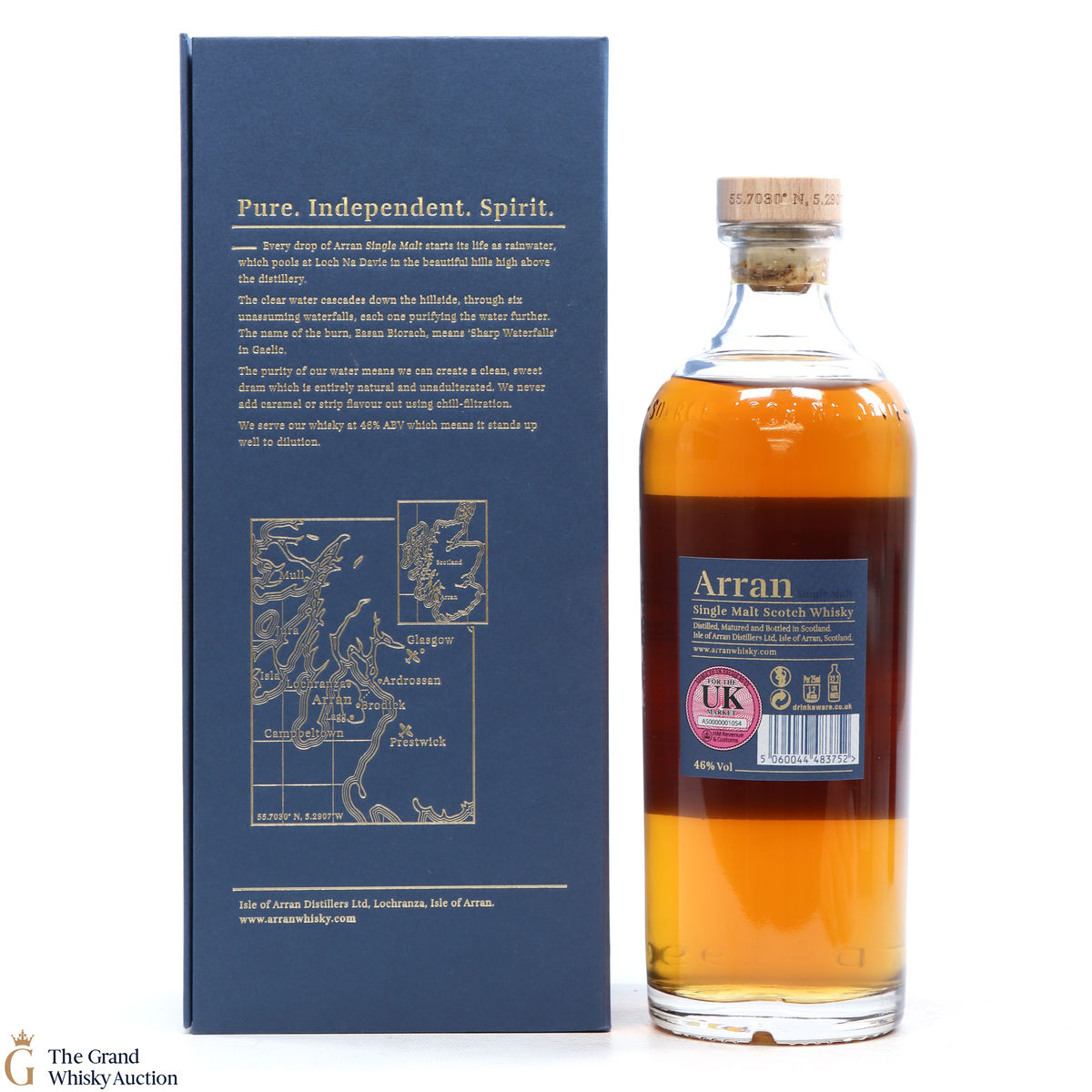 Arran distillery located in Lochranza, was founded by Harold Currie in 1994 who was white the man. He was a former director of Chivas and a D-Day veteran. The distillery building plans were scuppered or hampered if you will by a pair of golden eagles and because of their status as a protected species, construction was temporarily halted. Previous experience of distilling on the island would have been rife with word of around 50 distilleries being present at one time, however, none of these were actually official. The most recent and well know prior to Lochranze was called Lagg and sadly closed in 1837. Arran used to store their casks in a warehouses down in Campbeltown at Springbank. However, the legal implications behind this were passed and the distillery at one point offered individuals an opportunity to own their own cask of whisky, which can be stored on site at the distillery.
