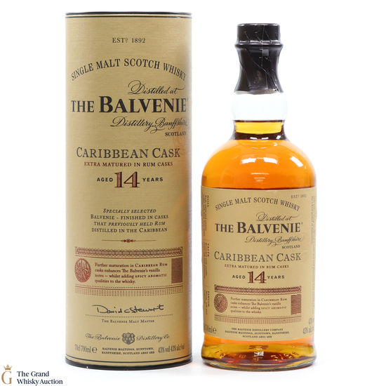 The Balvenie Caribbean Cask 14 year old has been matured in traditional oak whisky casks for 14 years, and then finished in casks that previously held Caribbean rum.