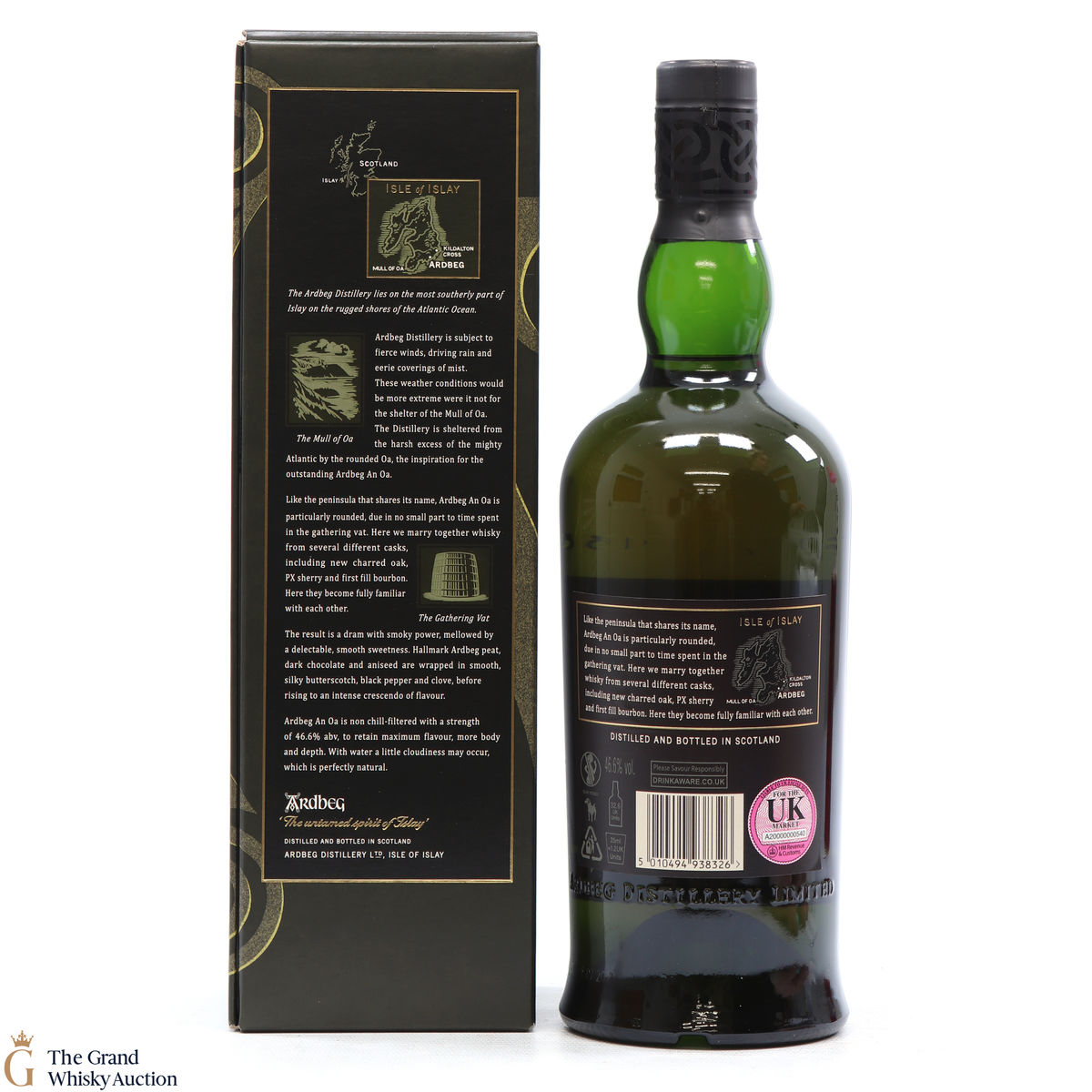 'An Oa' was the first addition to Ardbeg's core range for a decade when introduced in 2017. It is made up from a combination of spirit aged in Pedro-Ximenez sherry casks and bourbon barrels. Married in a French-oak marrying vat, this is rounded and smoky with notes of toffee, aniseed, date and banana.