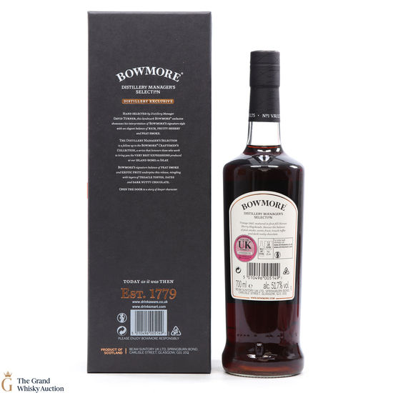 The Bowmore Distillery Manager's Selection is a follow up to the Bowmore Craftsmen's Collection.