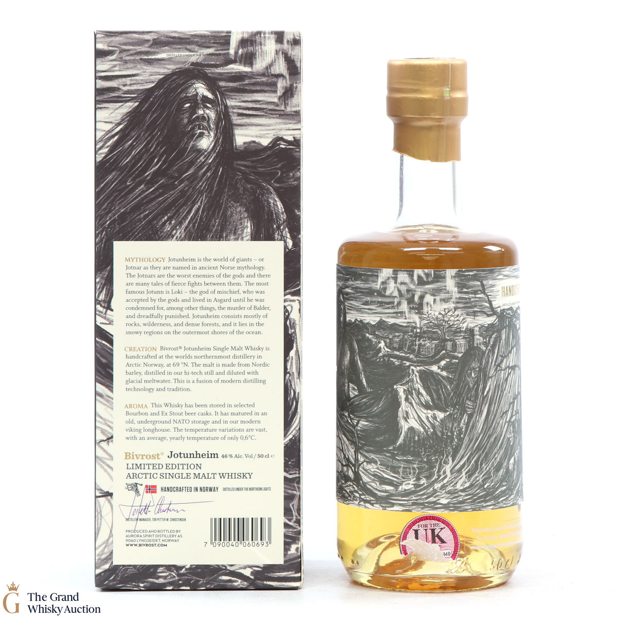 Distilled in Arctic Norway at the foot of the Lyngen Alps and matured in an underground storage vault, previously part of a network of tunnels in a Cold War NATO base.