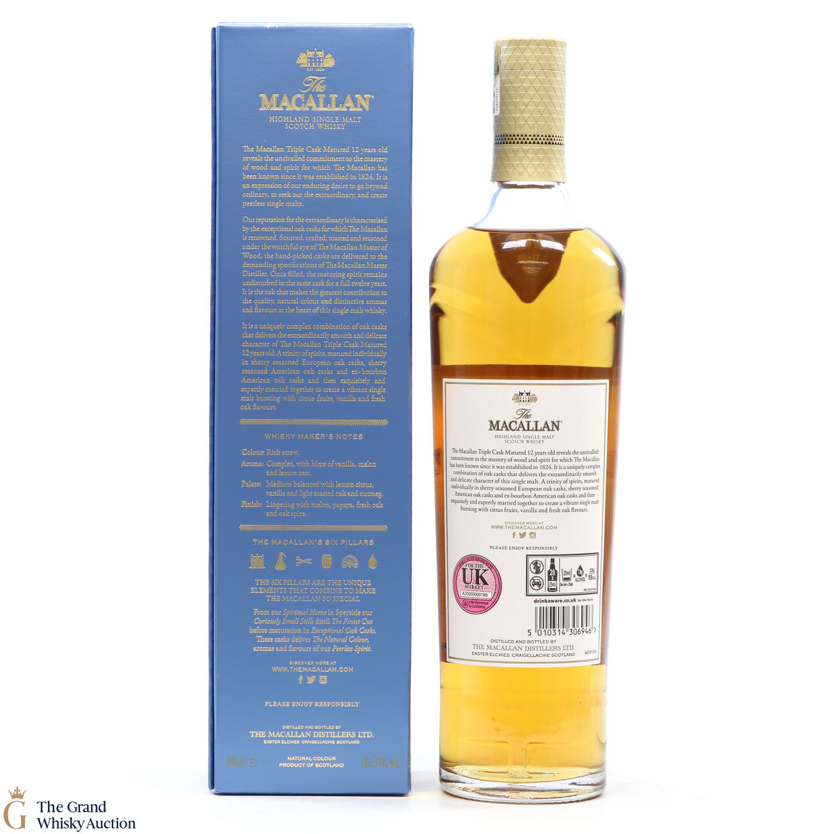 The 12 year old single malt was matured for 12 years and drawn from a combination of European sherry seasoned casks, American sherry seasoned casks and American ex-bourbon casks. It is part of Macallan's Triple Cask range which was launched in 2018, taking the place of the Fine Oak range.