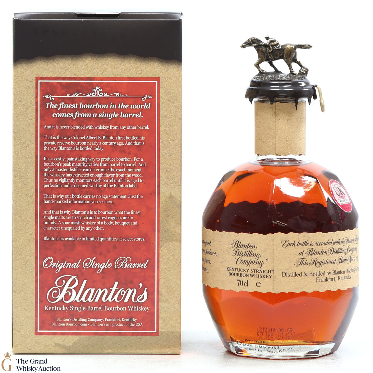 Blanton's Single Bourbon is normally 6 to 8-year-old bourbon, aged in Warehouse H at Buffalo Trace in the metal-clad warehouse at the distillery. The metal, transfers heat quicker than brick warehouses, allowing for faster ageing.
