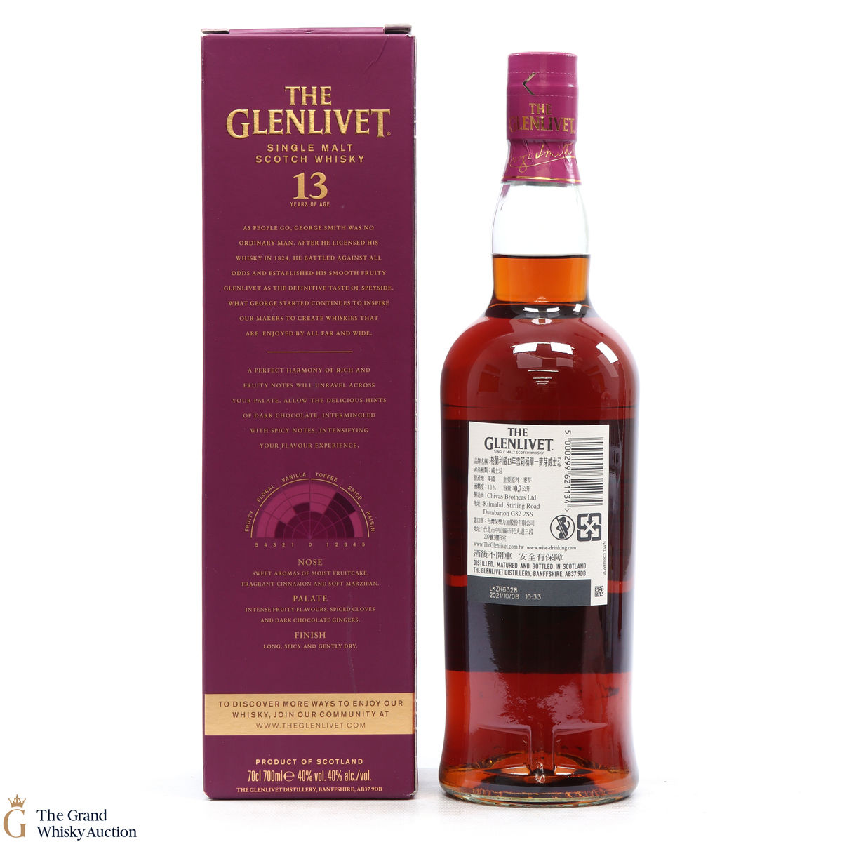 Known as 'The single malt that started it all' for Glenlivet. The Glenlivet 13 Year Old has a soft smooth balance of sweet summer fruits and the floral notes of spring flowers.