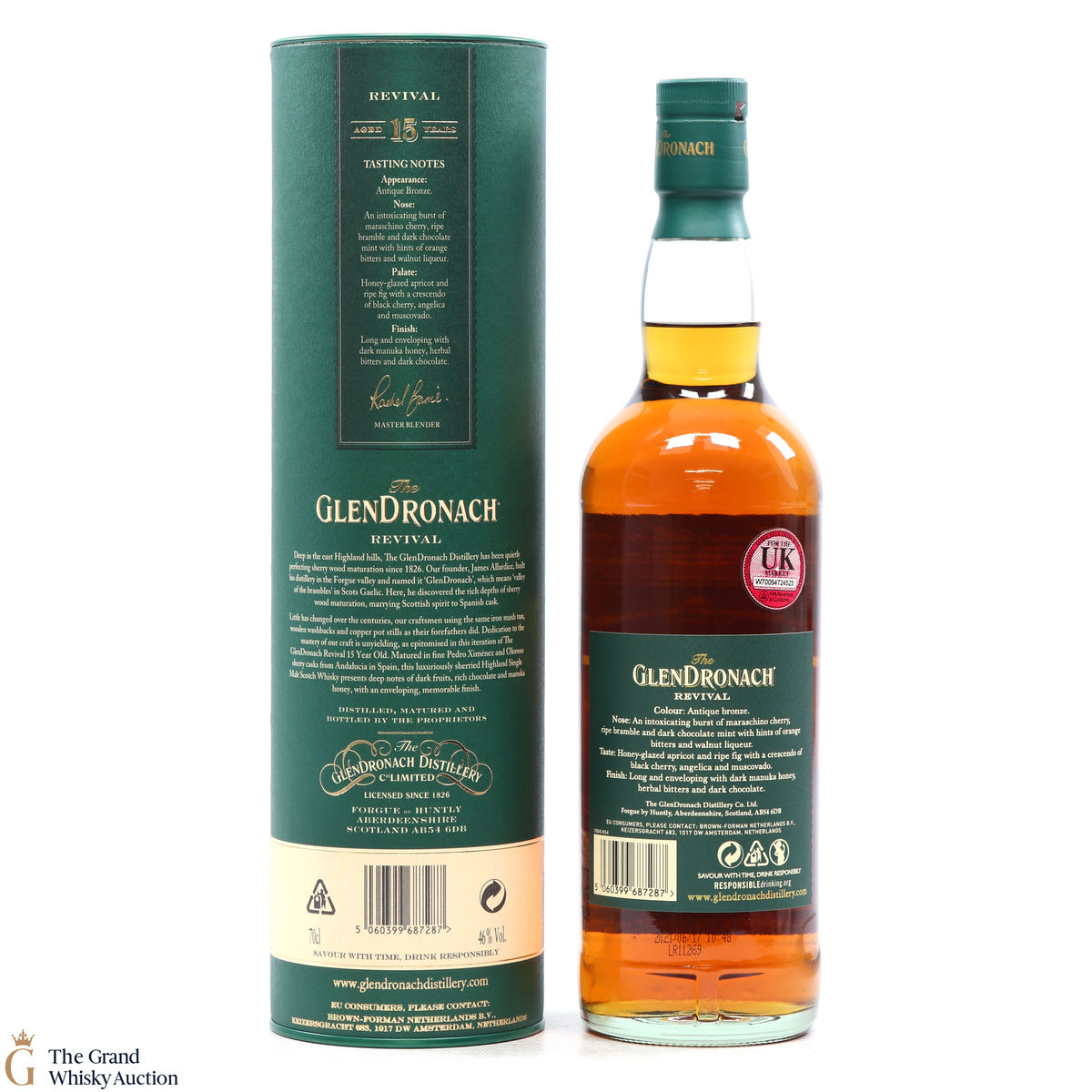 GlenDronach's 15 Year Old Revival was sadly discontinued in 2015 by the distillery due to lack of available stocks. However, stocks have been replenished and The GlenDronach 15 Year Old Revival has returned. This bottling was matured in Oloroso sherry casks.