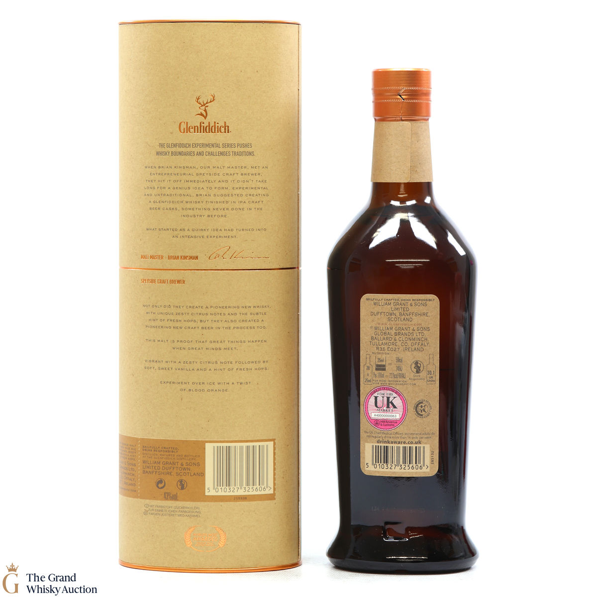 From the Speyside distillery, Glenfiddich, this is their Experimental Series. The single malt was finished in bespoke craft IPA barrels. This pioneering malt is imbued with unique zesty citrus notes and the subtle tang of fresh hops.