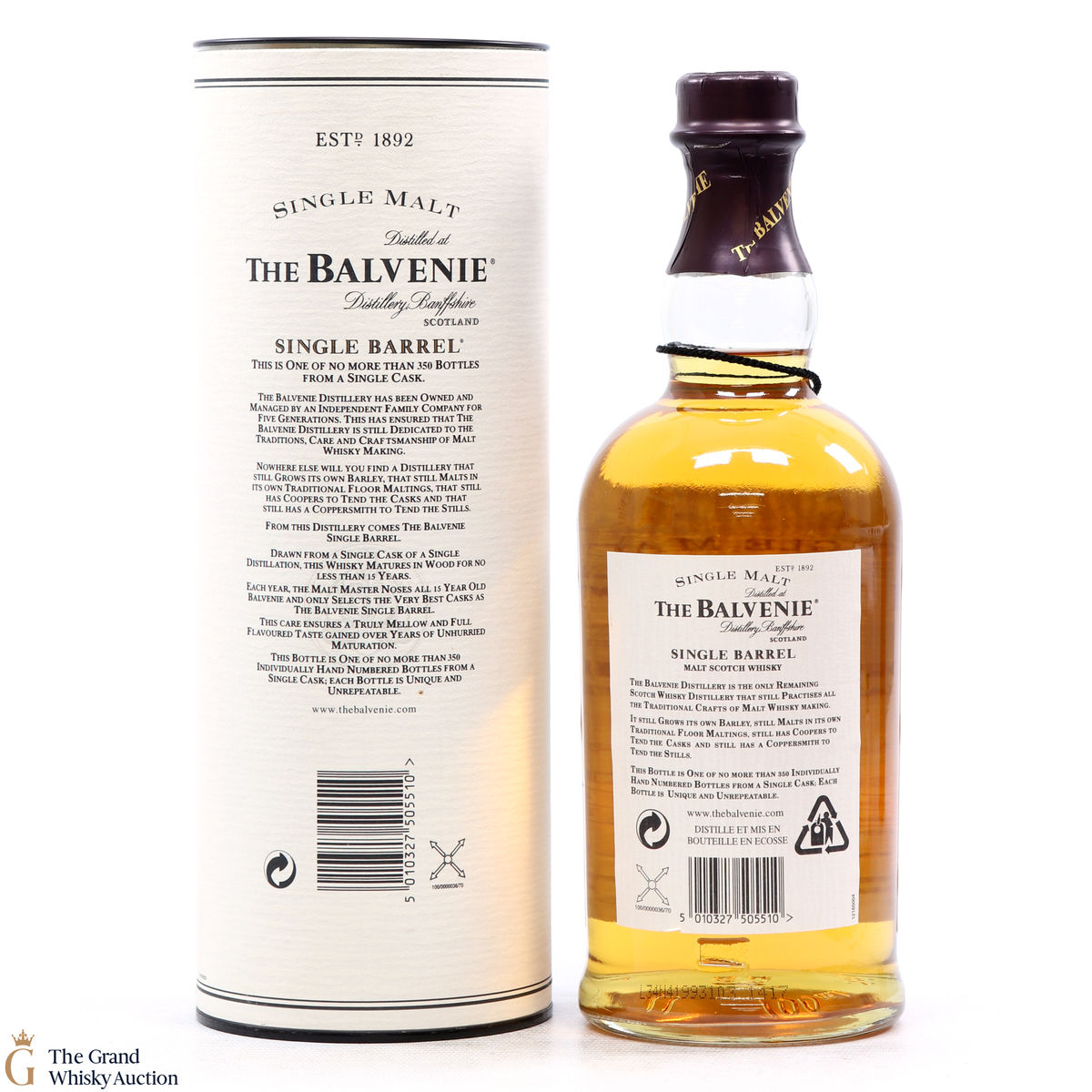 An older edition of Balvenie's classic single barrel series, a 15-year-old single malt, drawn from a single traditional oak whisky cask and bottled by hand.