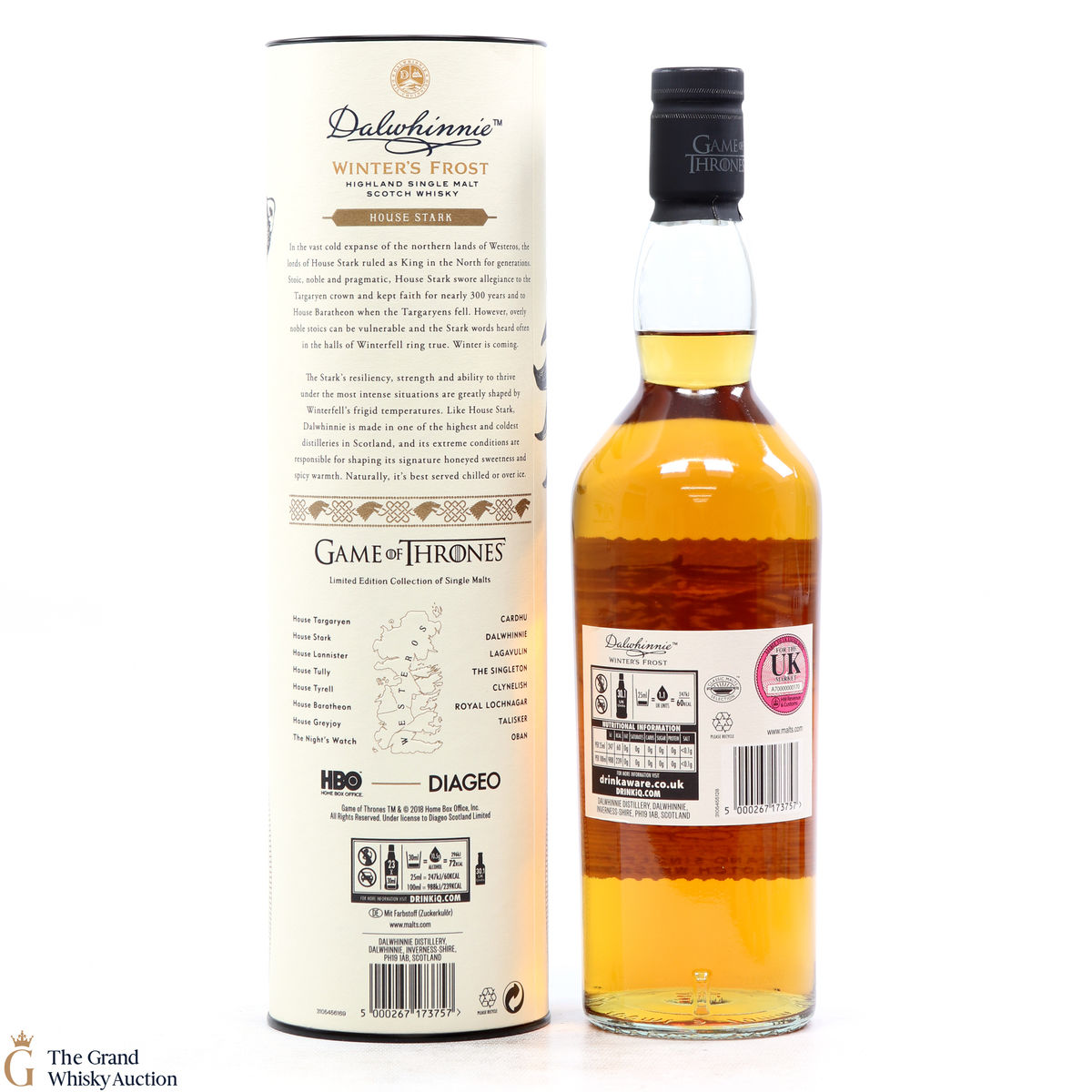 The lords of House Stark ruled as King in the North for generations, in the vast cold expanse of the northern lands of Westeros. The Stark's resilience, strength and ability to thrive in the most intense situations are greatly shaped by Winterfell's frigid temperatures. Like House Stark, Dalwhinnie is made in one of the highest and coldest distilleries in Scotland, and its extreme conditions are responsible for shaping its signature flavour.