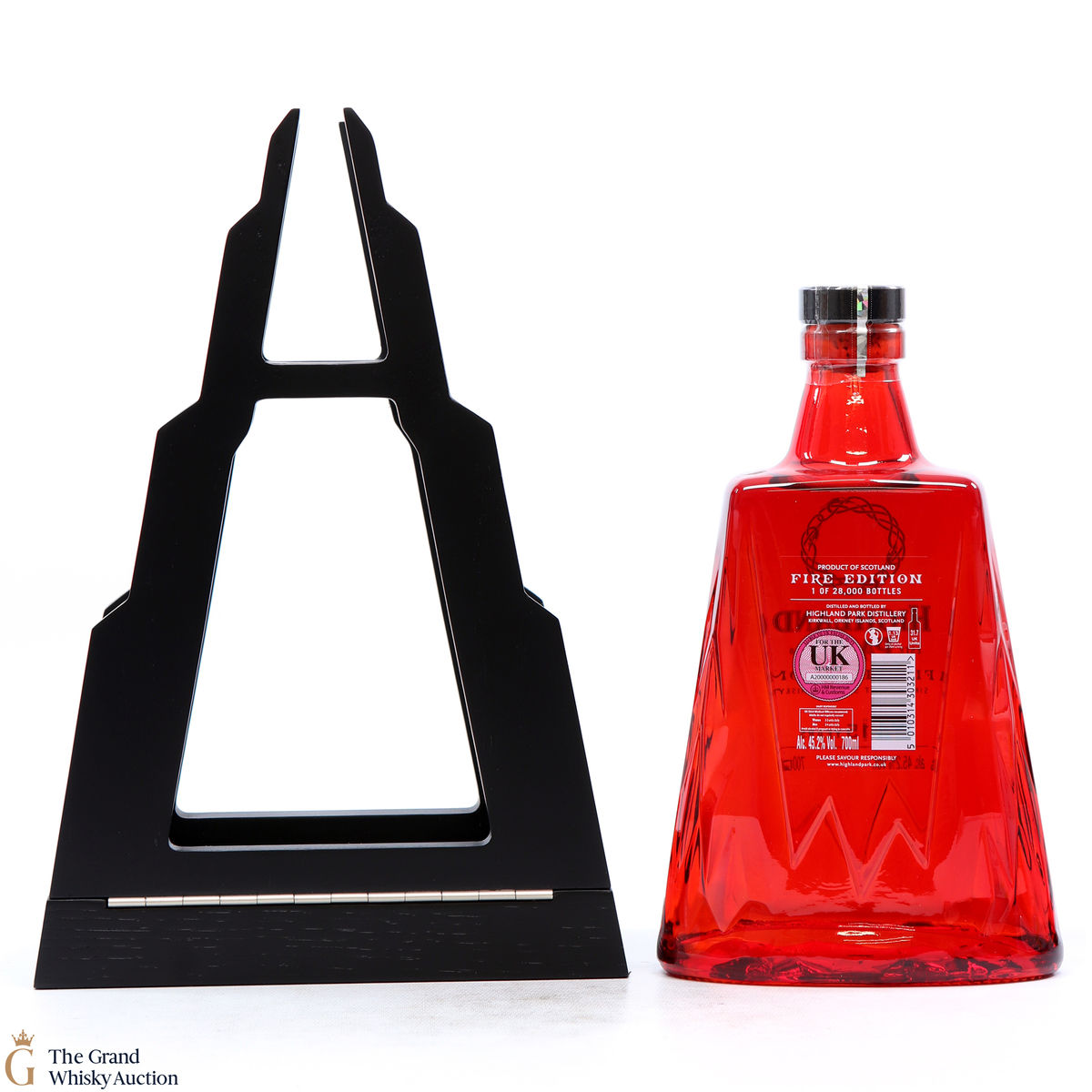 This stunning Highland Park 15 year old single malt follows the 'Ice' edition to complete this Highland Park two-part series. The 'Fire' edition celebrates Muspelheim, the glowing Norse fire realm of destruction. The malt was matured in refill Port casks and bottled at 45.2% abv. It's presented in a cradle shaped like a mountain.