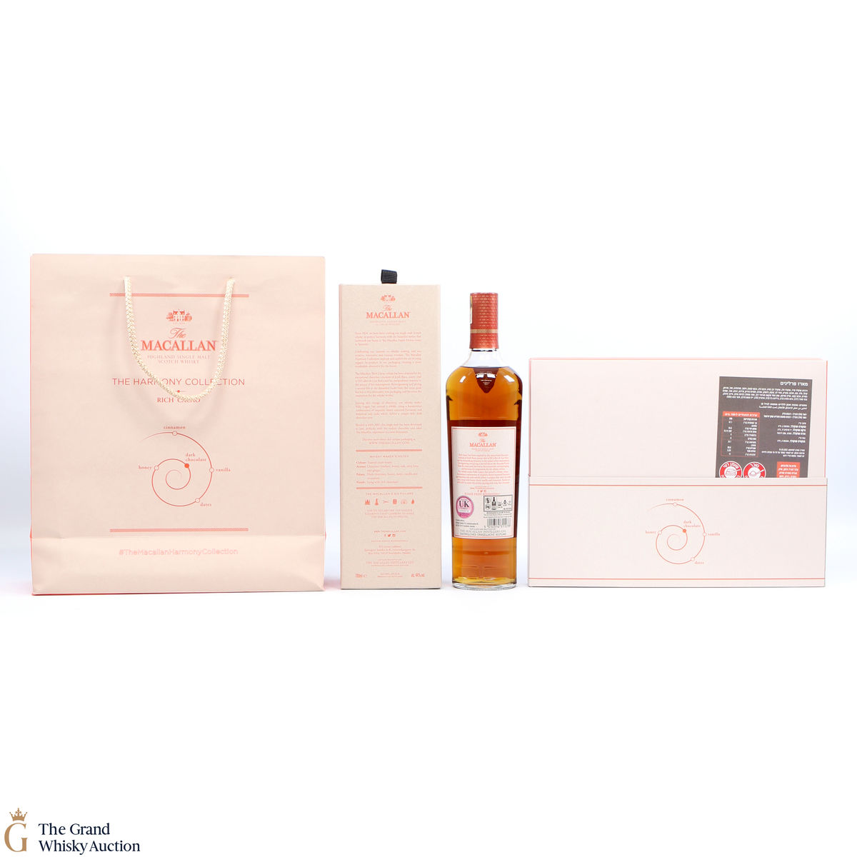 This lot includes 1x Macallan - The Harmony Collection Rich Cacao 70cl, and 1x Macallan The Harmony Collection Rich Cacao: Chocolatiers Experience containing 25 unique chocolate pralines.