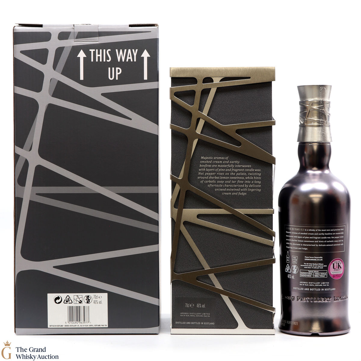 This guaranteed 25 Year old by Ardbeg has been produced from incredibly rare casks which were filled during some of the distillery's darkest day's. Known for its peated whiskies this is one of Ardbegs oldest aged whisky to join the core range. This expression proves that age cannot tame Ardbeg’s smoky power, but also that it can yield some of the most complex and majestic flavours ever from Ardbeg Distillery.