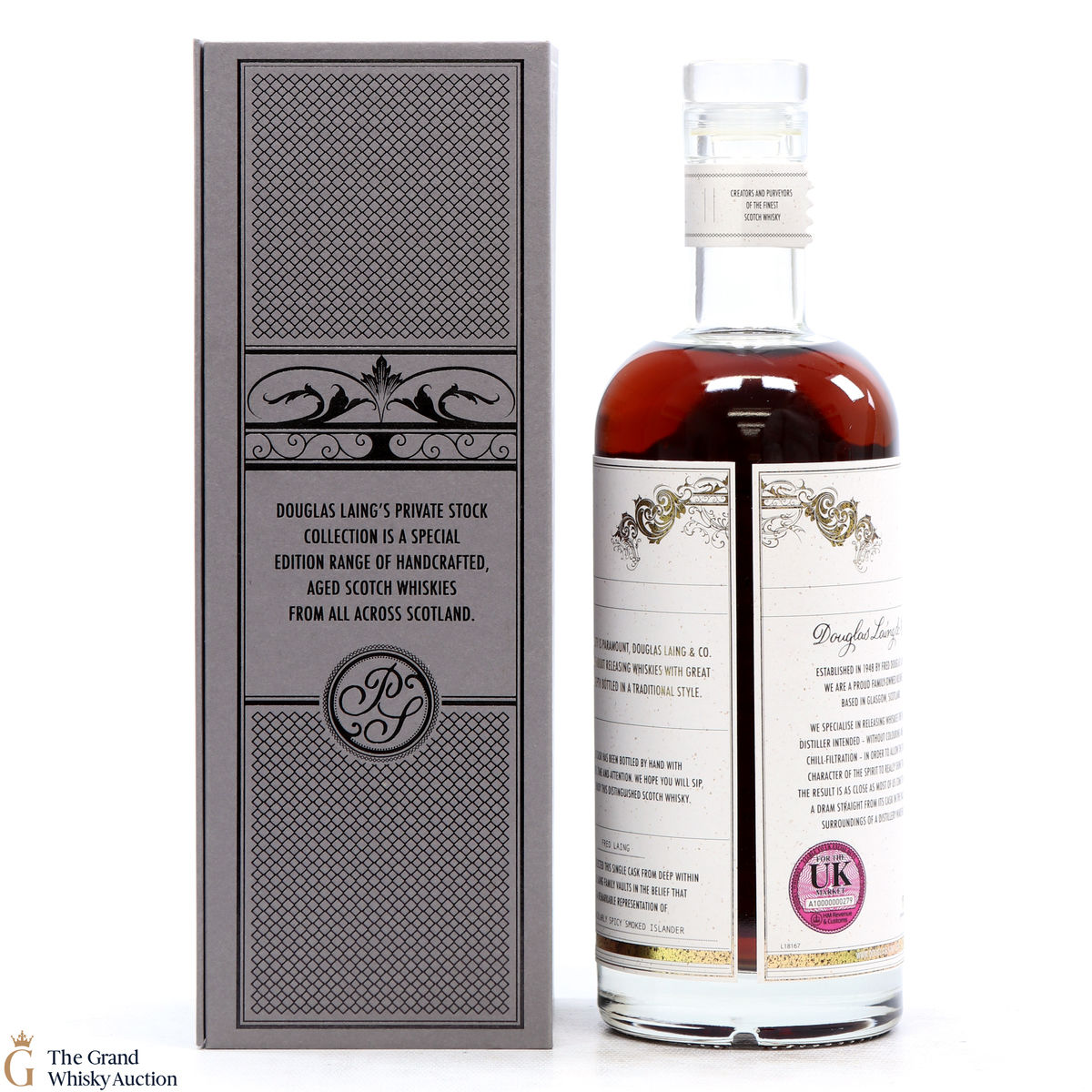 Due to the various ages of bottles and their seals, the condition of liquid is at the buyer's discretion and no claim can be lodged against failure/leakage in transit. Loss and breakage cover is available at 3% of the hammer price as standard. If the lot is not insured, no claim can be lodged against the courier or The Grand Whisky Auction for breakage or loss in transit.