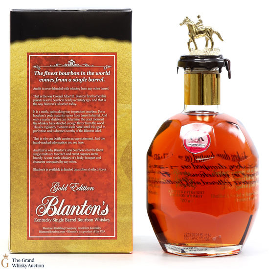 PLEASE NOTE: The wax seal on Blanton's bottles are prone to cracking in transit due to their design. Therefore, as stated in our T&C’s, we do not and will not accept liability should the seal be breached, broken, split or leak in transit. Additionally, please know due to the design of the internal cardboard packaging that surrounds the top of the bottles, it too may be torn. By bidding on this lot you have understood this to be true. Insurance is for complete breakage or loss in transit only.