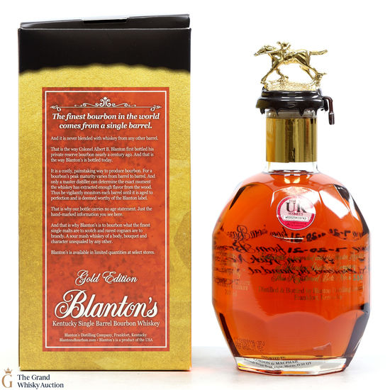 PLEASE NOTE: The wax seal on Blanton's bottles are prone to cracking in transit due to their design. Therefore, as stated in our T&C’s, we do not and will not accept liability should the seal be breached, broken, split or leak in transit. Additionally, please know due to the design of the internal cardboard packaging that surrounds the top of the bottles, it too may be torn. By bidding on this lot you have understood this to be true. Insurance is for complete breakage or loss in transit only.