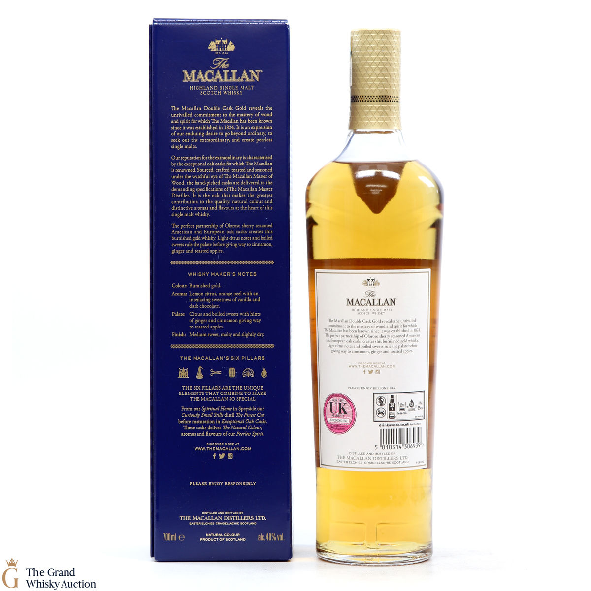 Macallan Gold was first introduced in 2012 as part of the distillery's 1824 range of non-age statement expressions, before being renamed Macallan Gold Double Cask in 2018 as part of the new core range. Matured in a combination of first fill and refill American oak and European oak sherry casks to create an incredibly smooth and rich single malt. Soft gold in colour, this is the lightest expression of the Macallan range, but still packed with typical Speyside Macallan flavours.