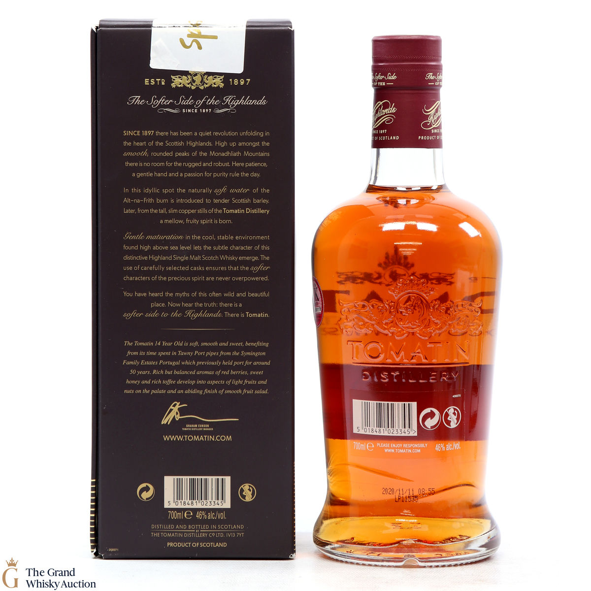 The Tomatin 14 Year Old was introduced to the core range in 2014. Matured in bourbon barrels and selected Port casks, imparting wine-like sweetness to the whisky.
