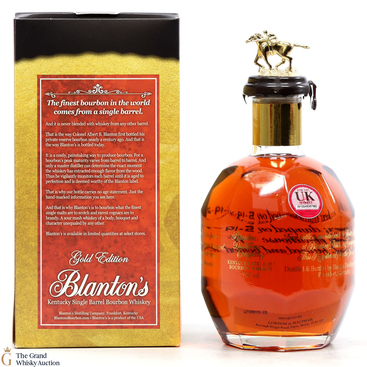 PLEASE NOTE: The wax seal on Blanton's bottles are prone to cracking in transit due to their design. Therefore, as stated in our T&C’s, we do not and will not accept liability should the seal be breached, broken, split or leak in transit. Additionally, please know due to the design of the internal cardboard packaging that surrounds the top of the bottles, it too may be torn. By bidding on this lot you have understood this to be true. Insurance is for complete breakage or loss in transit only.