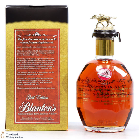 PLEASE NOTE: The wax seal on Blanton's bottles are prone to cracking in transit due to their design. Therefore, as stated in our T&C’s, we do not and will not accept liability should the seal be breached, broken, split or leak in transit. Additionally, please know due to the design of the internal cardboard packaging that surrounds the top of the bottles, it too may be torn. By bidding on this lot you have understood this to be true. Insurance is for complete breakage or loss in transit only.