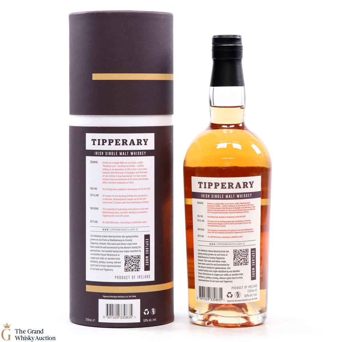 This first batch of Tipperary homegrown barley whiskey was limited to just 2,000 bottles. Aged entirely in first-fill ex-Rioja casks, this homegrown barley whiskey was distilled from barley grown on their land, matured in a traditional farm shed right beside the farmhouse and bottled at 50% abv.