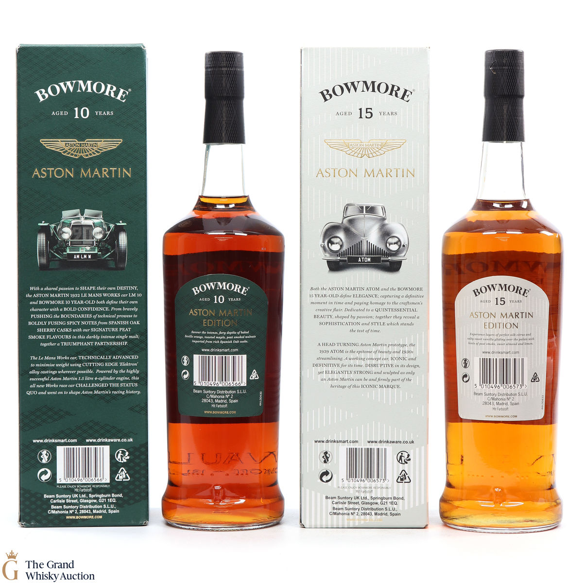 The Bowmore and Aston Martin, both creates timeless beauty and a lasting legacy. Each edition of the Aston Martin collection features a different car. Included in this lot is edition 1 & 2.