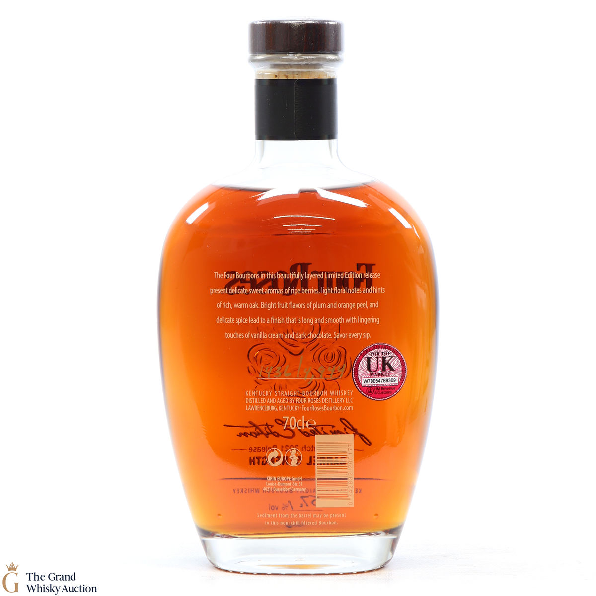 Due to the various ages of bottles and their seals, the condition of liquid is at the buyer's discretion and no claim can be lodged against failure/leakage in transit. Loss and breakage cover is available at 3% of the hammer price as standard. If the lot is not insured, no claim can be lodged against the courier or The Grand Whisky Auction for breakage or loss in transit.