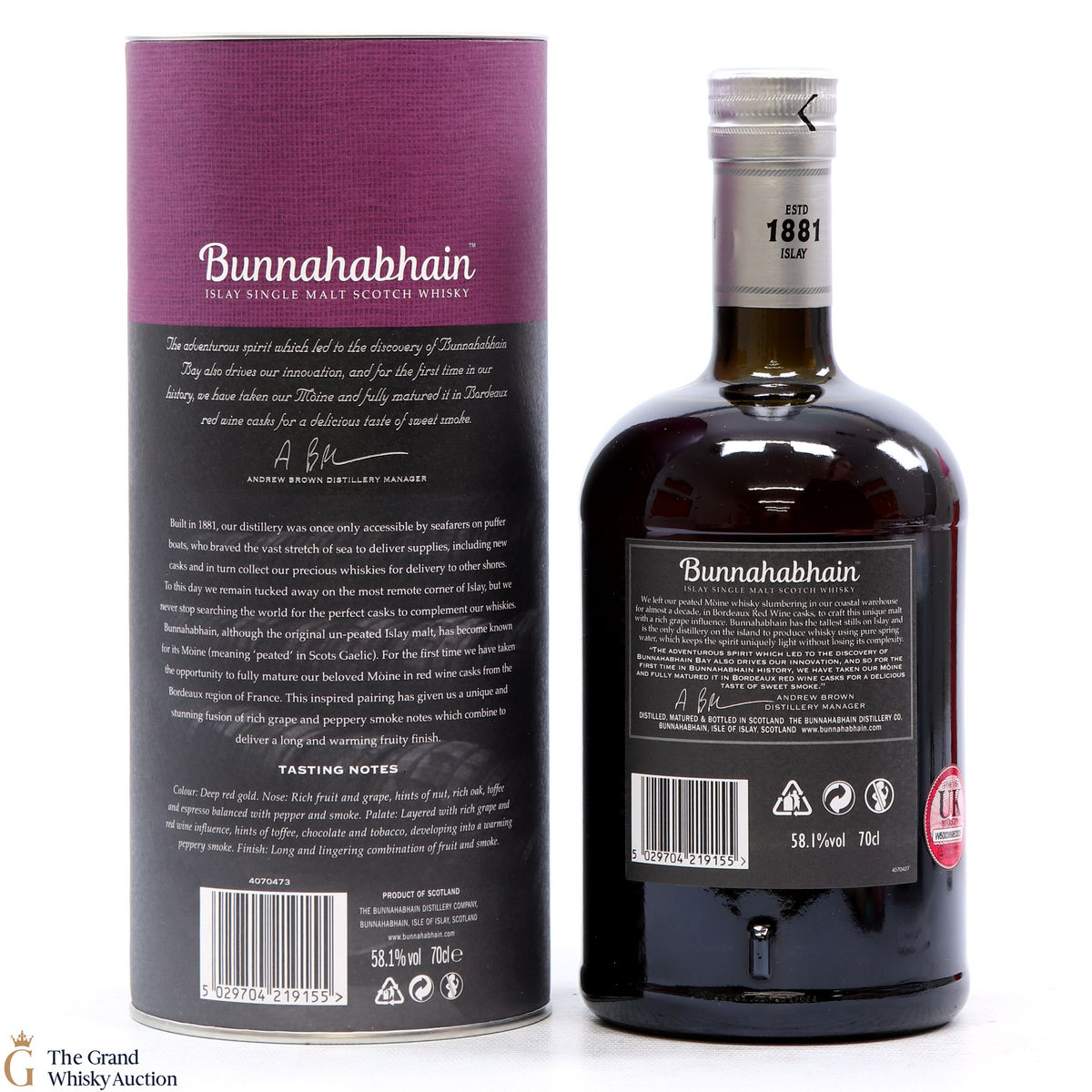 'Mòine' meaning peated in Gaelic - this release brings together both peat smoke and a richly flavoured red-wine cask. This limited release was fully matured in red wine casks from Bordeaux. Distilled in 2008 and matured for 9 years in warehouse No.8. This is one of 4536 individually numbered bottles.