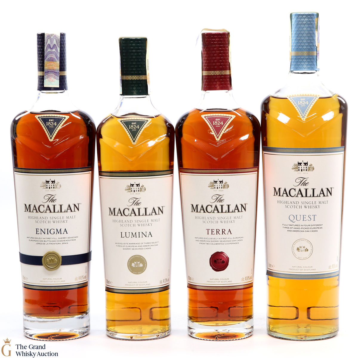 - Enigma: Enigma is at the top end of Macallan's Quest Collection drawn exclusively from European oak Sherry seasons casks from one cooperage in Jerez de la Frontera, Spain. 70cl, 44.9% ABV.