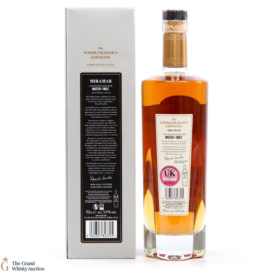 Distilled at The Lakes Distillery, this single malt is an exceptional diversion from the distillery's sherry house style. Given the title Miramar, this is part of The Whiskymaker's Editions and was bottled exclusively for Master of Malt.