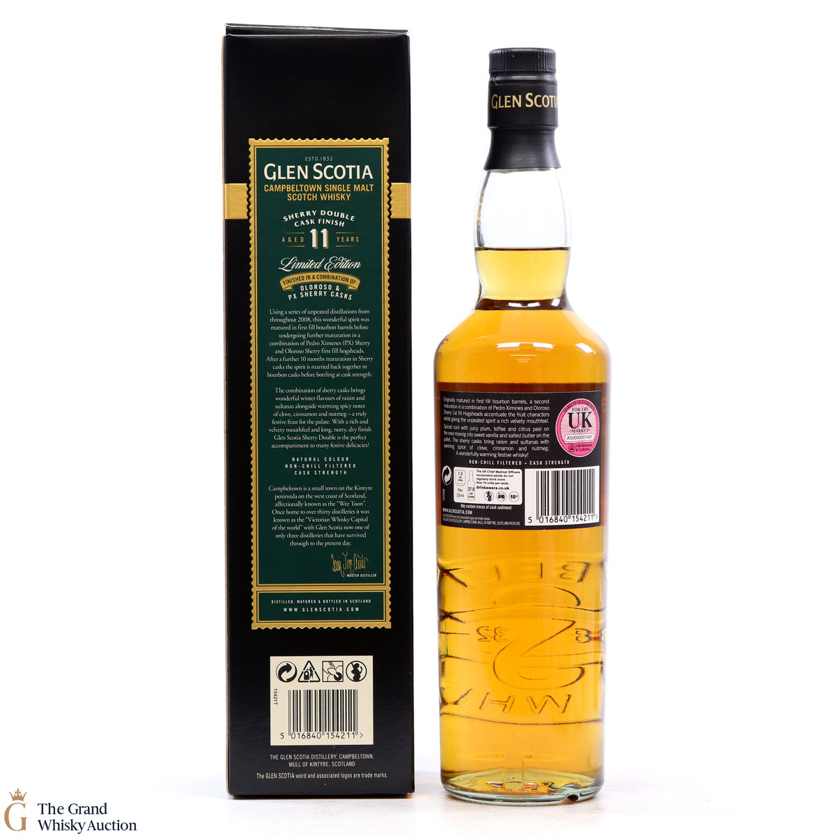Distilled at the Glen Scotia Distillery, this single malt underwent maturation for a total of 11 years, initially being filled into a first fill bourbon barrel, this spirit was then finished in both a PX cask and an Oloroso sherry cask before being bottled at the cask strength of 54.1% ABV.