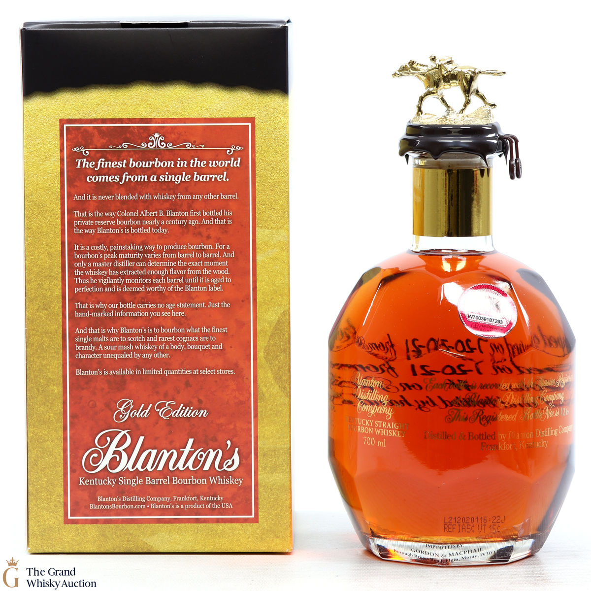 PLEASE NOTE: The wax seal on Blanton's bottles are prone to cracking in transit due to their design. Therefore, as stated in our T&C’s, we do not and will not accept liability should the seal be breached, broken, split or leak in transit. Additionally, please know due to the design of the internal cardboard packaging that surrounds the top of the bottles, it too may be torn. By bidding on this lot you have understood this to be true. Insurance is for complete breakage or loss in transit only.