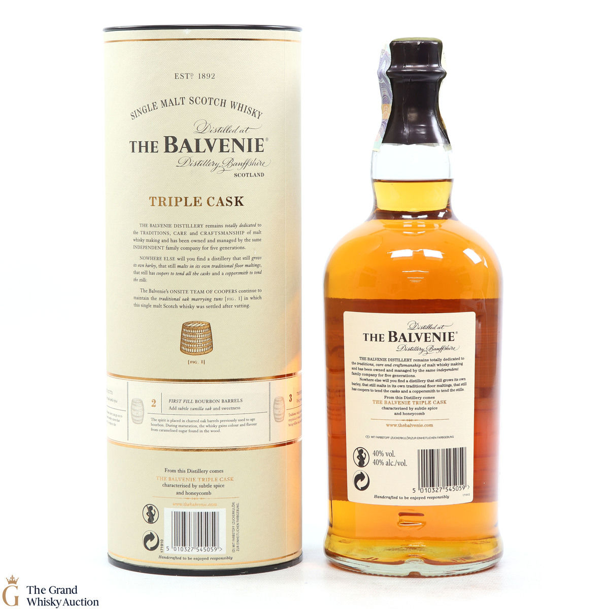 The 12 year old Triple Cask expression is part of Balvenie's travel retail range. It is made with whisky matured in three different types of cask, namely first-fill American oak barrels, traditional refill casks and first-fill Oloroso Sherry butts. Following the maturation, the whisky is married together to create a cohesive, flavoursome expression packed with orchard fruit, custard cream and cinnamon spice. This is a 1L bottling.
