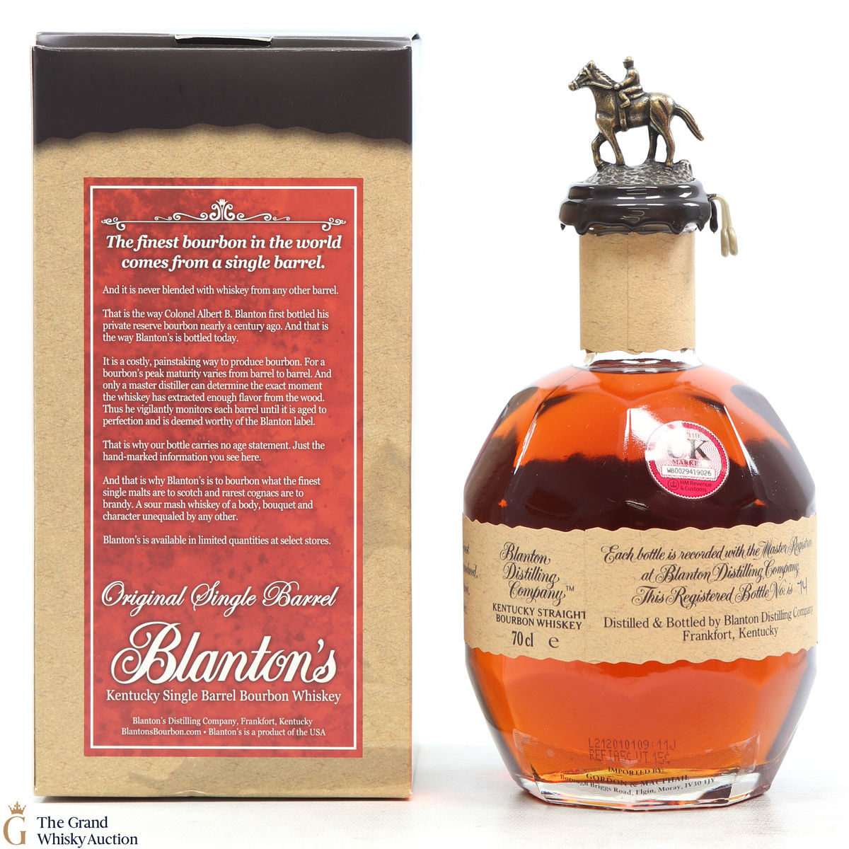 PLEASE NOTE: The wax seal on Blanton's bottles are prone to cracking in transit due to their design. Therefore, as stated in our T&C’s, we do not and will not accept liability should the seal be breached, broken, split or leak in transit. Additionally, please know due to the design of the internal cardboard packaging that surrounds the top of the bottles, it too may be torn. By bidding on this lot you have understood this to be true. Insurance is for complete breakage or loss in transit only.