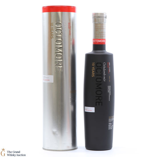 This was the first limited-edition release of Octomore Ten, the world's most heavily peated Scotch (80.5PPM), matured in American oak casks. This is a limited release of 6,000 bottles.