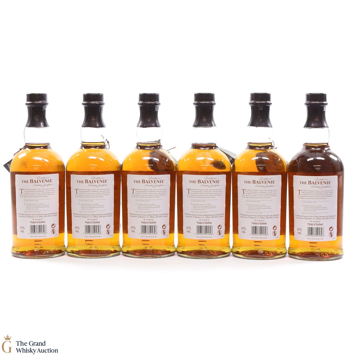 Due to the various ages of bottles and their seals, the condition of liquid is at the buyer's discretion and no claim can be lodged against failure/leakage in transit. Loss and breakage cover is available at 3% of the hammer price as standard. If the lot is not insured, no claim can be lodged against the courier or The Grand Whisky Auction for breakage or loss in transit.