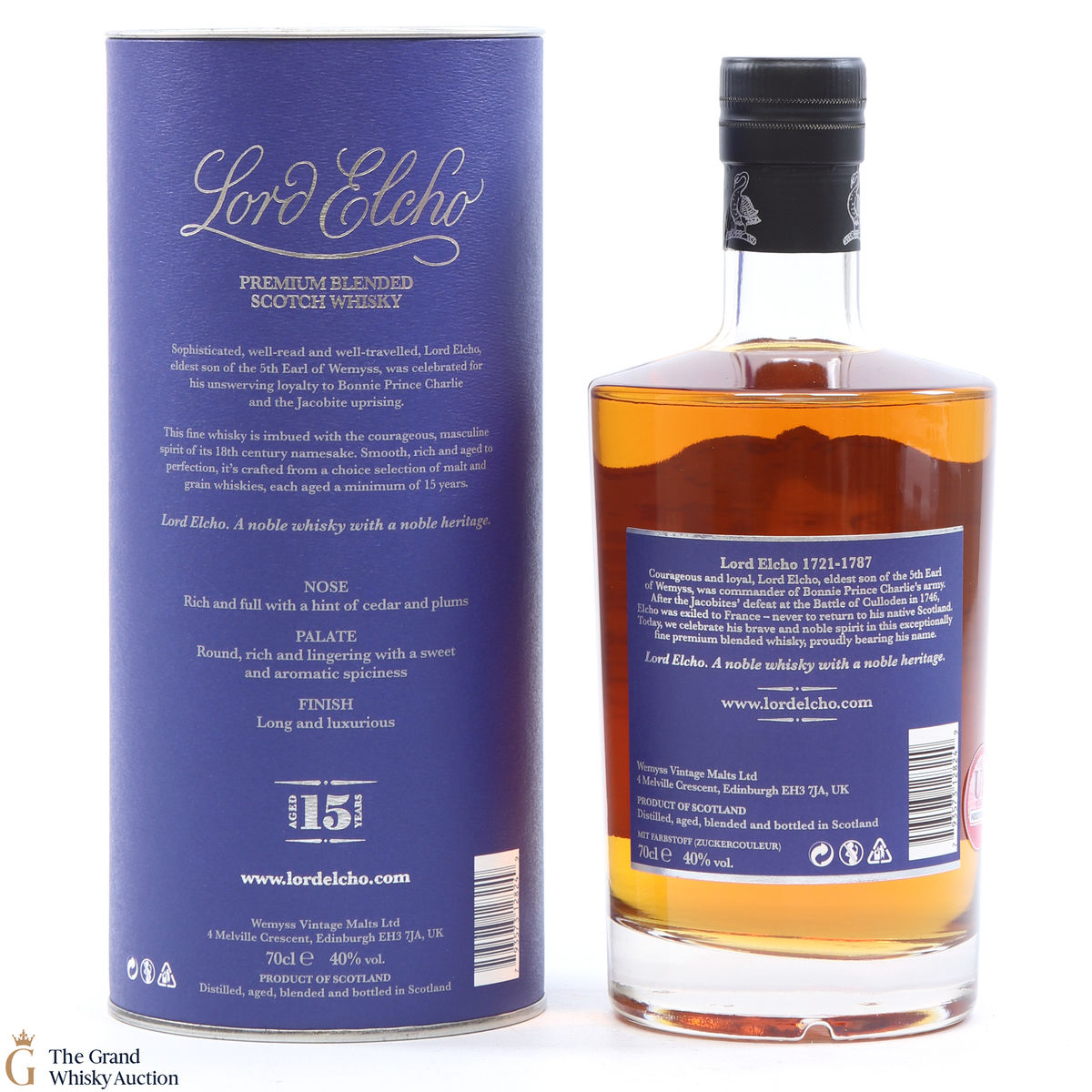 Lord Elcho blended whisky is named after David, Lord Elcho, eldest son of the 5th Earl of Wemyss, was one of the most celebrated supporters of Bonnie Prince Charlie during the ill-fated Jacobite Rebellion of 1745. This is a 15-Year-Old blended malt by Wemyss Vintage Malts.
